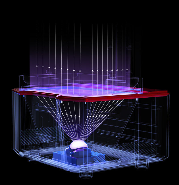 フレネルコリメートレンズと組み合わせたCOB光源は、5度の光角度と0.5%の光散乱係数、および90%の光均一性の範囲内で、画面全体でより垂直で均一な露出を保証し、滑らかな表面と鋭いエッジを備えたモデルを印刷できます。