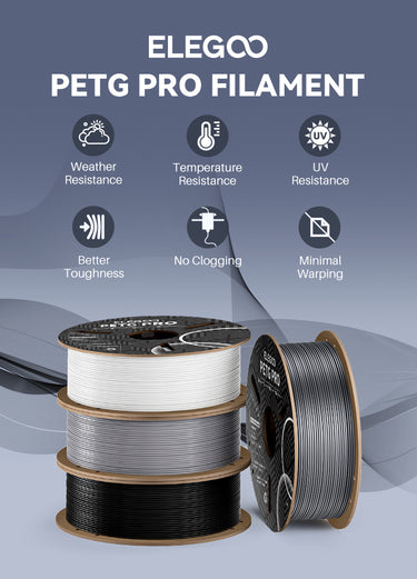 ELEGOO PETG PRO フィラメントは、PLA と ABS の長所を両立しています。PLA 同様に非常に印刷しやすく、且つ ABS 並みの強度と耐久性を実現します。