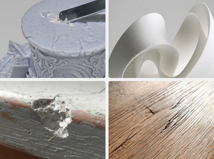 垂れにくい粘土状のパテで、混ぜるなどの手間なしでそのままご使用いただけます。容易に成形でき、しっかり密着。微細な層段差やひび割れも、垂れやたるみなく正確に充填します。