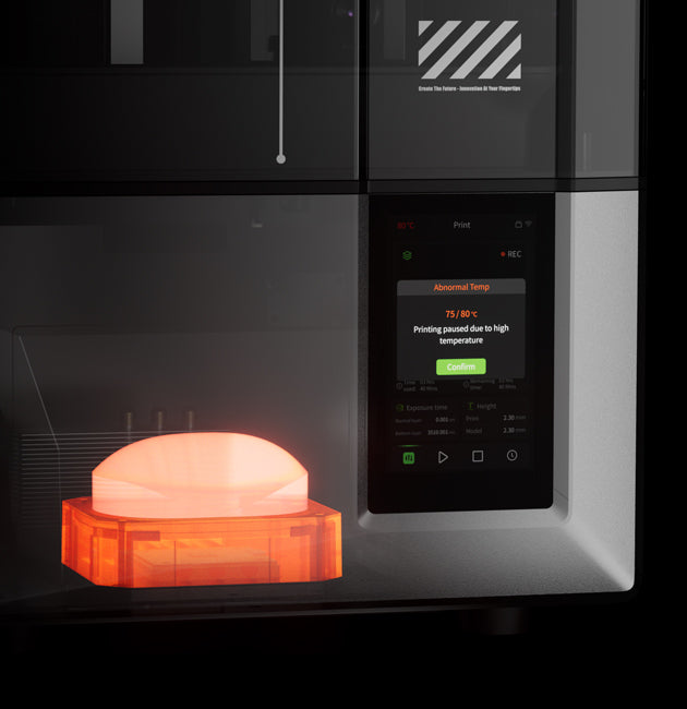 過熱の心配はもうありません。高度な高温保護で安心して印刷を楽しめます。LED温度が80℃を超えると、インテリジェントシステムがアラームを発し、自動的に印刷を停止し、安全性を高め、機器の寿命を延ばします。