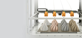 X軸に3つのプリントヘッドを追加することで、4つのノズルによる同時印刷が可能になります。同じモデルを4つ同時に印刷でき、各ノズルには同じ材料で異なる色のフィラメントを装着して、同じ種類のモデルを4色で印刷することができます。