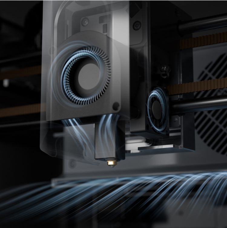 Centauri Carbonの高度な冷却ファントリオで卓越した印刷品質を実現。高速5020モデルの冷却ファンから、フィラメントの安定した流れを保つ専用ホットエンドファン、強化冷却用の補助ファンまで、すべてのユニットが効率的な冷却を提供し、優れた印刷結果をもたらします。