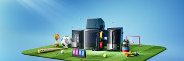 プリンターや材料をセールで手に入れて、スポーツデザインの多彩なモデルをすぐ造形。試合の熱気をカタチに!