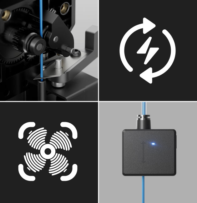 ユーザーフレンドリーな機能で、印刷をより簡単で楽しいものに。ワンクリックでのフィラメントアンロード、フィラメント残量が少なくなると警告し印刷を一時停止するスマート検出器、停電復旧機能、リアルタイムファン自己診断など、毎回完璧な結果を実現します。