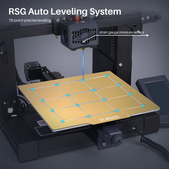 【RSGレベリングシステム】16ポイントの精密レベリングシステムにより、ヒートベッドの不均一性や表面の微小な変動を自動的に補正し、印刷の初層のZ軸高さを調整することで、手動キャリブレーションの必要がなくなります。また、Neptune 3はNeptune 2よりも大きな220x220x280mmのビルドボリュームを備えています。