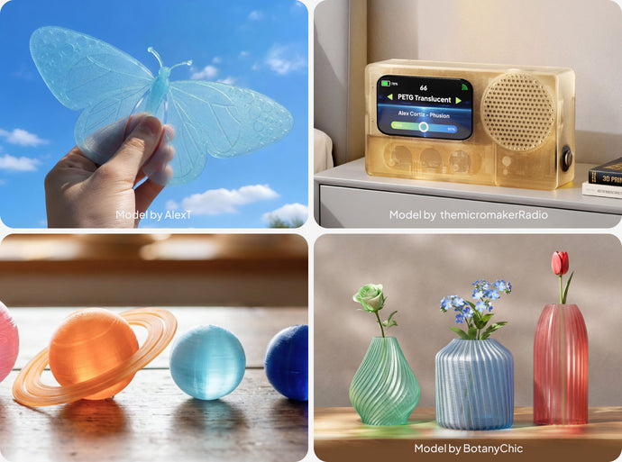 ※ご注意: 透明度は、モデルのサイズ・厚み・構造のほか、印刷速度、ノズル温度、インフィル密度などのプリント設定によって異なります。