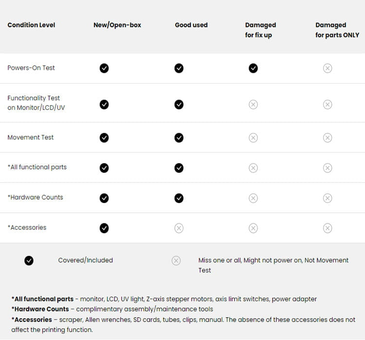 これらの部品は、標準保証の対象外、あるいは上記表に記載された限定的な保証期間内でのみ保証されますが、製造上の欠陥により不具合が生じた場合には、プリンター本体が保証期間内である限り、無償で交換対応いたします。なお、交換の可否についてはELEGOOが単独で判断するものとし、その決定は最終的なものとします。