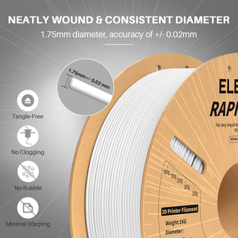RAPID PLA Plusフィラメントは、+/- 0.02mmの寸法精度と直径 1.75mmの厳密な公差を誇り、スムーズで一貫したフィラメントの流出を保証し、ノズル詰まりのリスクを軽減します。